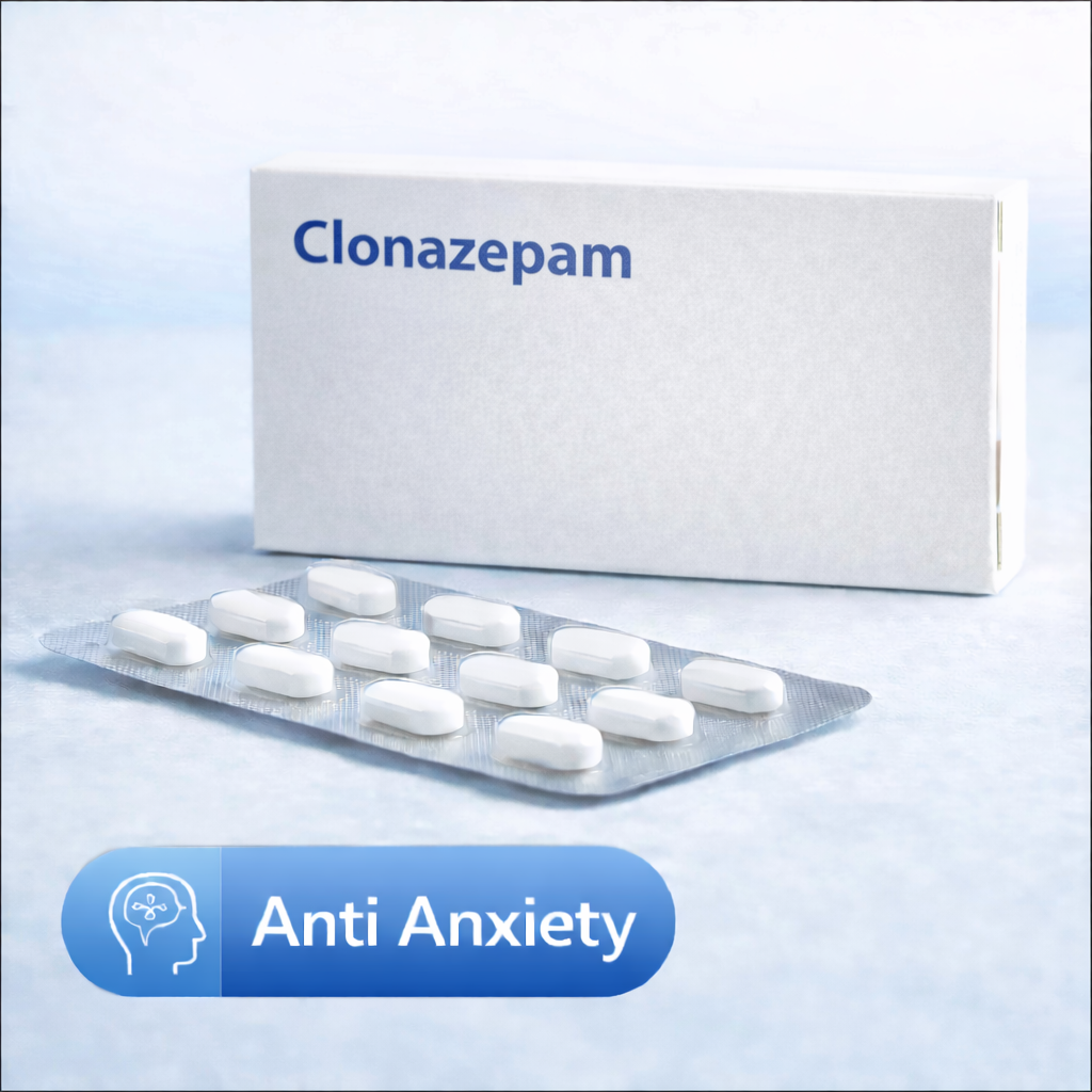 Clonazepam is an anti-anxiety medication used for management of anxiety and panic-related conditions. It helps stabilize nervous system activity and provides calming effects when taken as prescribed by a healthcare professional.